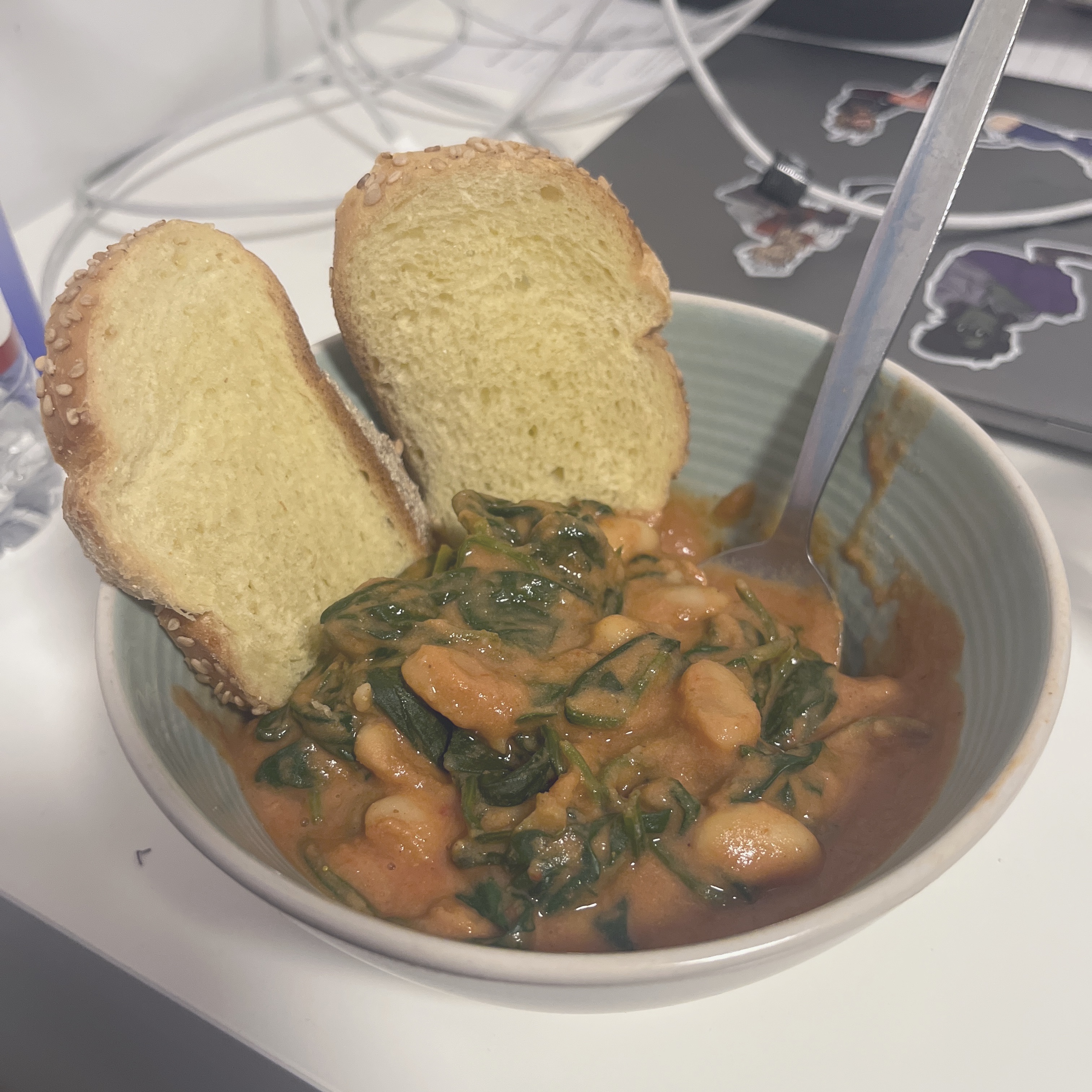 do not be fooled by the fact that this looks okay. it was, in fact, barely edible. in my haste to cook and eat food, i may or may not have forgotten to purchase anything that would give this meal, you know, flavor. my evil concoction of beans, tomato paste, spinach, curry powder, and absolutely nothing else sustained me, but unfortunately i cannot say much more of it.